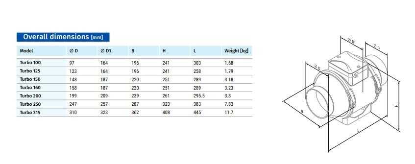 • TURBO serisi karma akışlı fanların 100-125-150-200 modelleri darbe ve korozyona dayanıklı kalın ve takviyeli plastikten, 250-315 modelleri ise epoksi-polyester boyalı çelik sacdan mamuldür.