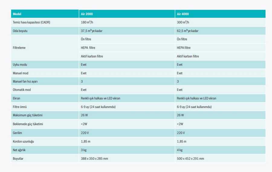 Üç farklı kapasite Bosch hava temizleme cihazları Air 2000, Air 4000 ve Air 6000; mekanın büyüklüğüne göre kullanabileceğiniz modelleriyle 3 farklı seçenek sunar.