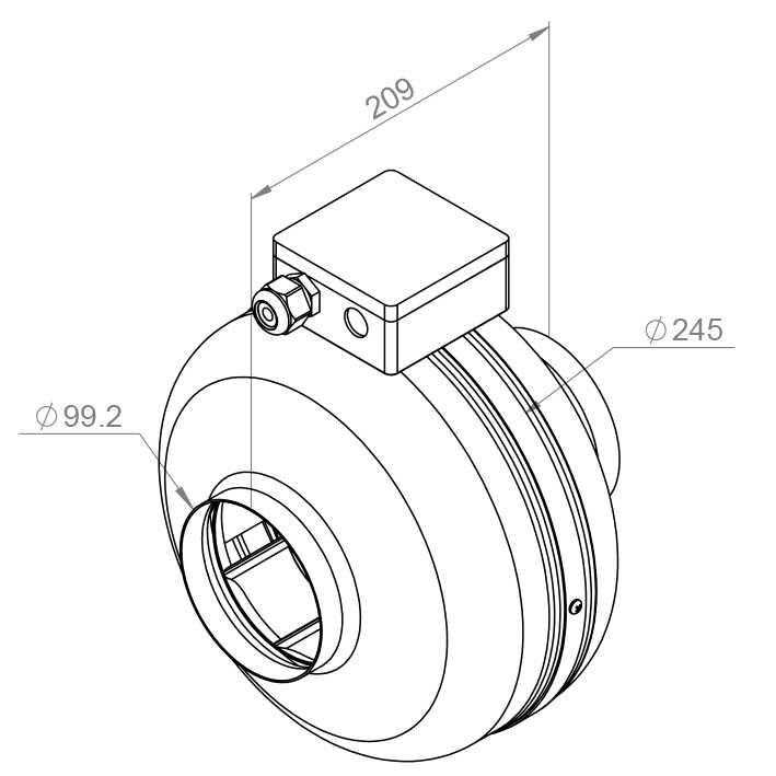 Fantilatör RS 100L Metal Gövdeli Yuvarlak Kanal Fanı 250 m3/h
